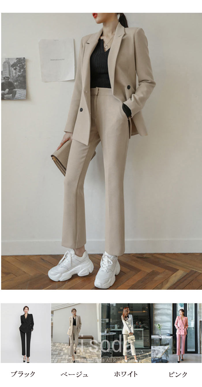 スーツセット レディース パンツスーツ レディースファッション 特集 ホワイト ブラック ピンク ベージュ S M L