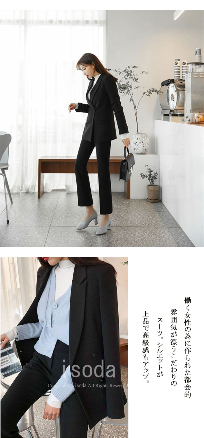 スーツセット レディース パンツスーツ 無地 2点セット 長袖 ビジネス フォーマル 通勤 就活 事務員 事務服 きれいめ おしゃれ 韓国風 ストレッチ 洗える OL パンツ フレア オシ ジャケット