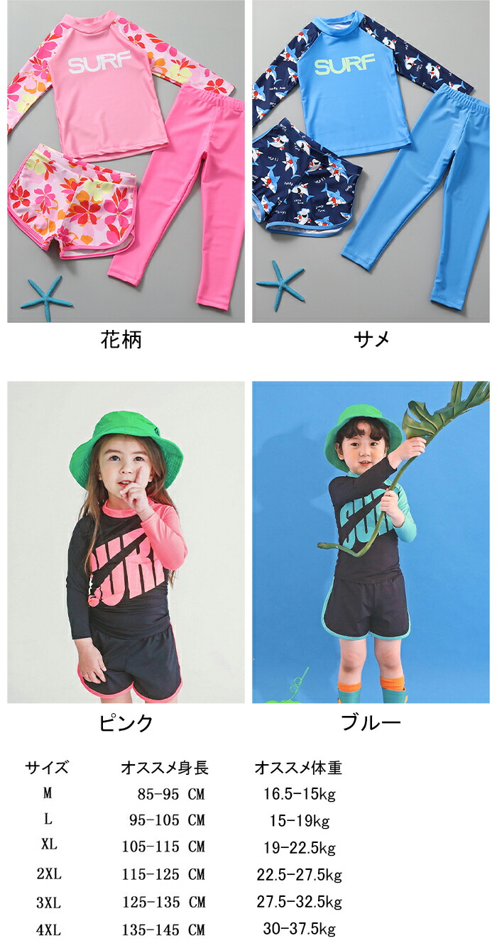 水着 セパレート 女の子 キッズ 男の キッズ 水着 続々登場 ブルー ピンク サメ 花柄 M L XL 2XL 3XL 4XL