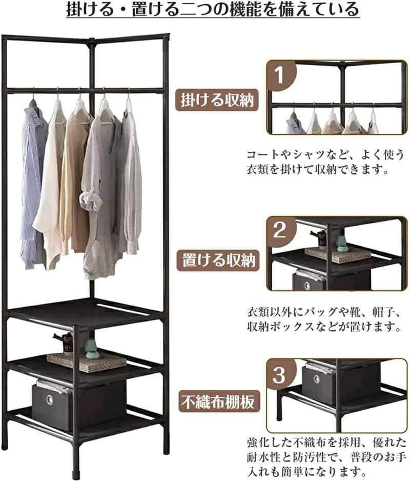 コーナー衣帽掛け フリースタンド式 寝 2層 3層