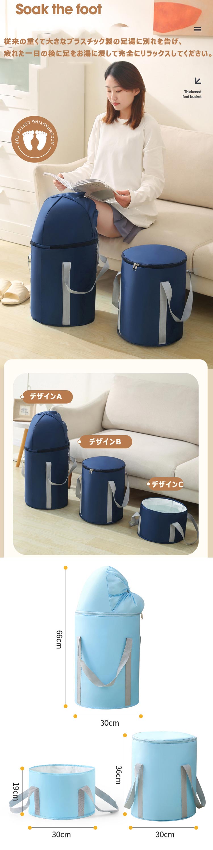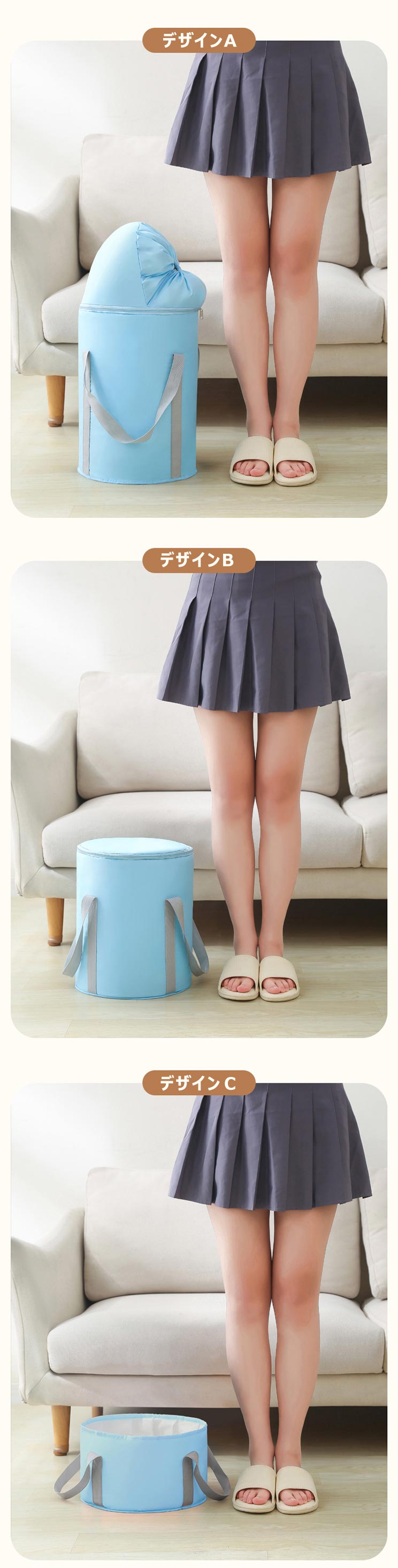 足湯バケツ フットバス たらい ポータ 日用品雑貨 文房具 手芸 続々入荷中 グレー ネイビー ピンク ブルー デザインA デザインB デザインC