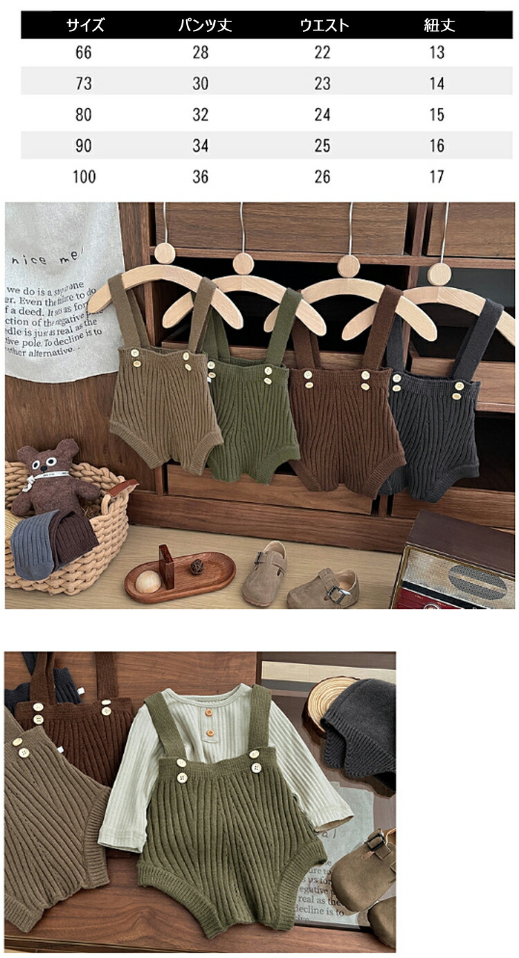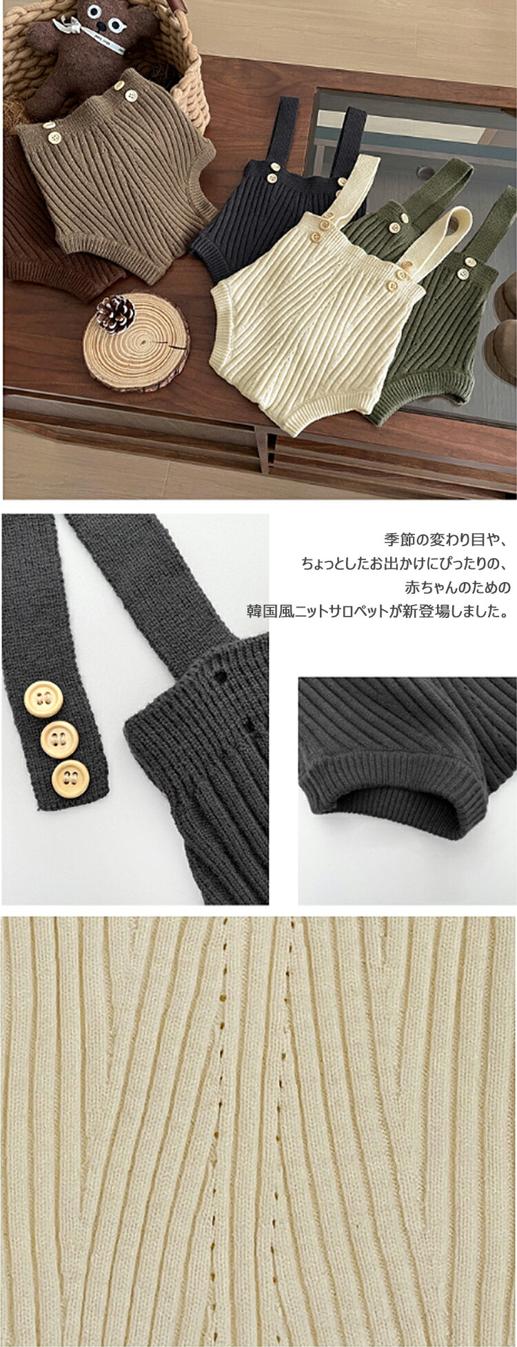 ベビー服 ニット サロペット 韓国風 キッズ オーバーオール 超目玉商品 ベージュ グレー グリーン ブラウン ダークブラウン 66 73 80 90 100