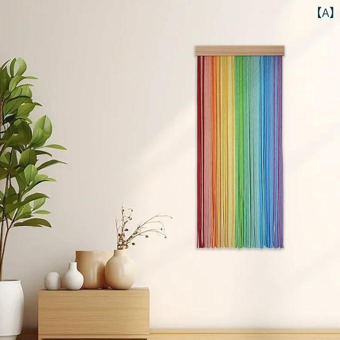 カーテン 手編み マクラメ 綿ロープ レインボーカラー タペストリー のれん ドアカーテン 間仕切り 北欧 ボヘミアン エスニック調 おしゃれ かわいい 半遮光 目隠し インテリア リビング 壁掛け