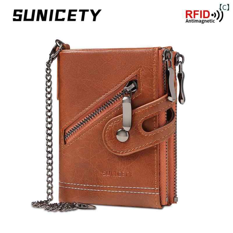 財布 メンズ 男性 ウォレット スキミング防止 二つ折り レザー 革 ダブルジッパー 小銭入れ チェーン付き レトロ ヴィンテージ PUレザー 合皮 ビジネス 通勤 ブラック ブラウン 黒 普段使い