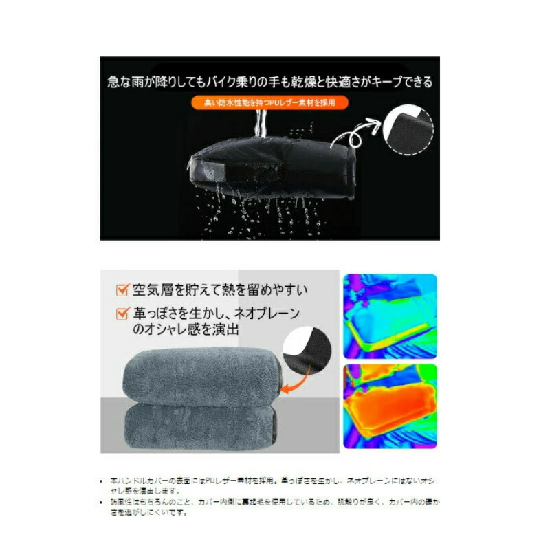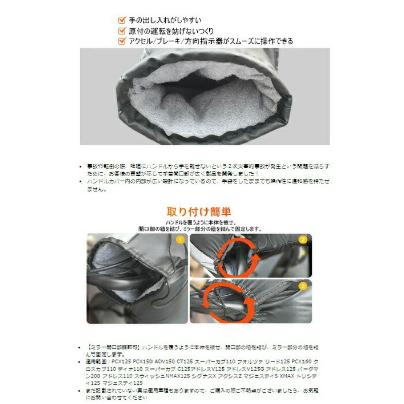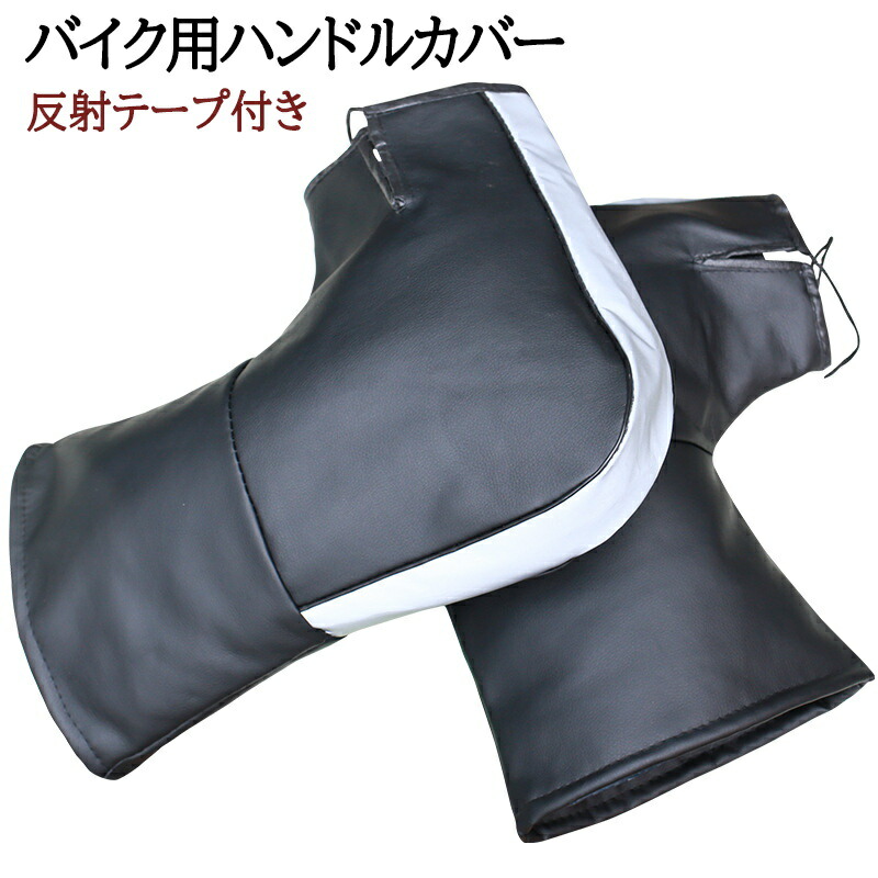 バイク用ハンドルカバー 防水防寒 防風対策 ハンドルカバー ハンドルウォーマー 原付ハンドルカバー 裏起毛 極厚 PUレザー素材 反射テープ付き ミラー開口部調節可 防撥水 簡単取り付け 色褪せない