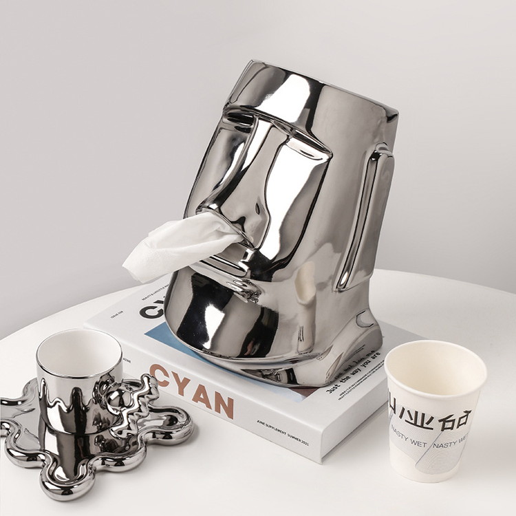 空間のアクセントにおすすめ!モアイ像型のティッシュケース。