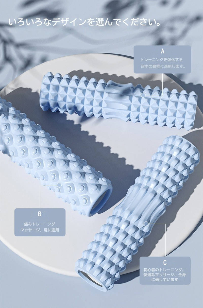 凹凸面が違う3種類のフォームローラーをご用意。