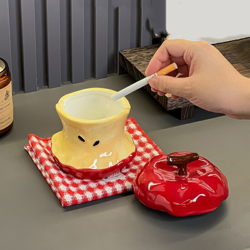 灰皿 フタ付き おしゃれ 陶器 りんご リンゴ型 卓上灰皿 おもしろ雑貨 大容量 洗いやすい 蓋付き灰皿 防臭 屋外 自宅 オフィス ベランダ アイコス ギフト プレゼントインテリア 雑貨 電子タバコ