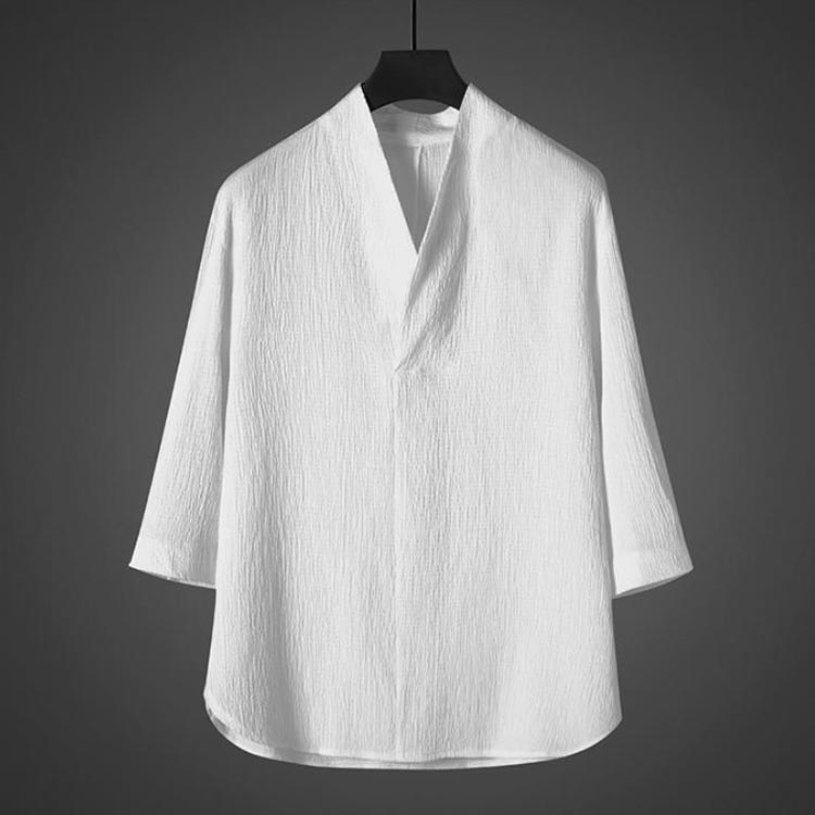 襟付き ジャージ 接触冷感 下着 アイスシルクセット Tシャツ Vネック 春夏 セットアップ 和風 半襦袢 着物 作務衣 メンズ 上下セット ロングパンツ 涼しい 吸汗速乾 部 tシャツ