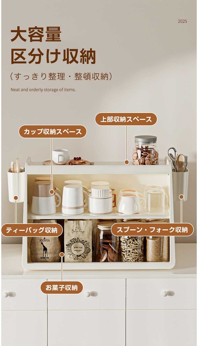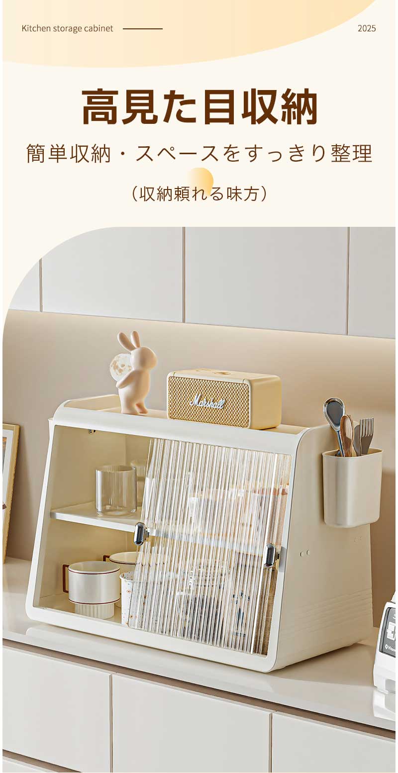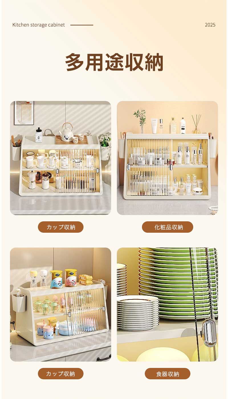 キッチン収納 食器棚 卓上 ミニ食器棚 カップスタンド カップ収納 コップラック ミニカップボード 卓上収納コップ 収納棚 防塵 防湿 お茶碗収納ボックス お手入れ簡単 大容量カップ 扉付き卓上食器棚