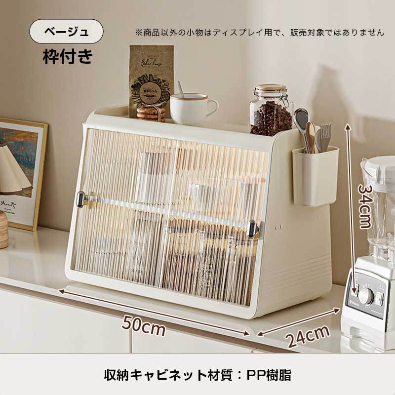 キッチン収納 食器棚 卓上 ミニ食器棚 ベージュ ベージュ/枠付き