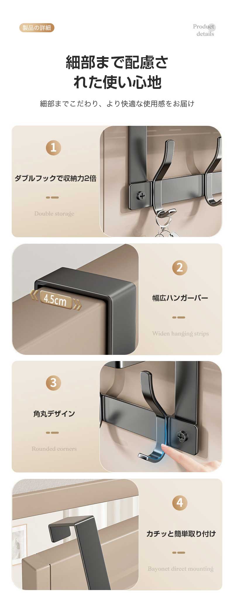 ドアハンガーフック ドアフック ウォールフック 扉 取り付け簡単 吊り下げ収納 引っ掛け 省スペース 日用品 帽子掛け コート掛け 小物掛け バッグ おしゃれ 整理 スッキリ 鞄