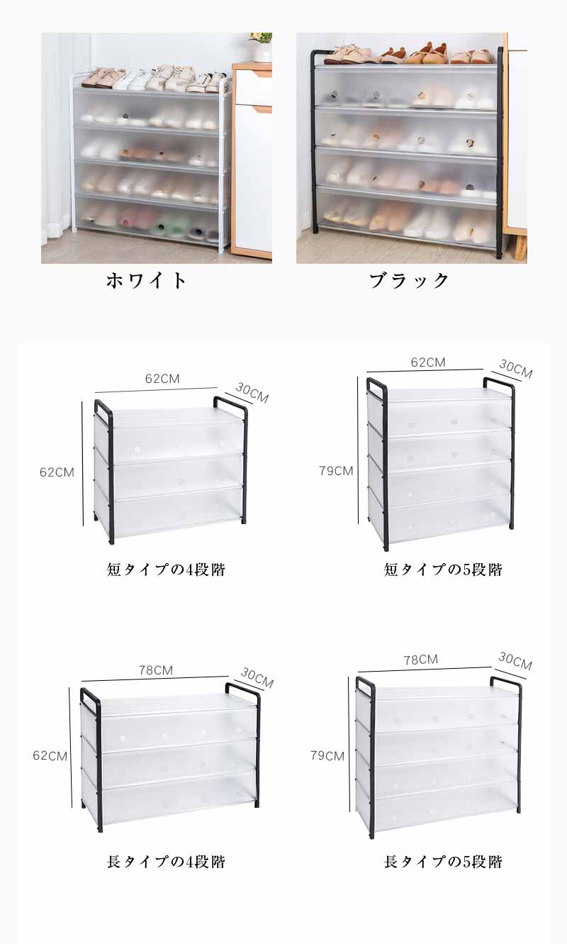 シューズラック 簡易シューズラック 幅 ブラック ホワイト 4段階(62幅) 4段階(78幅) 5段階(62幅) 5段階(78幅)