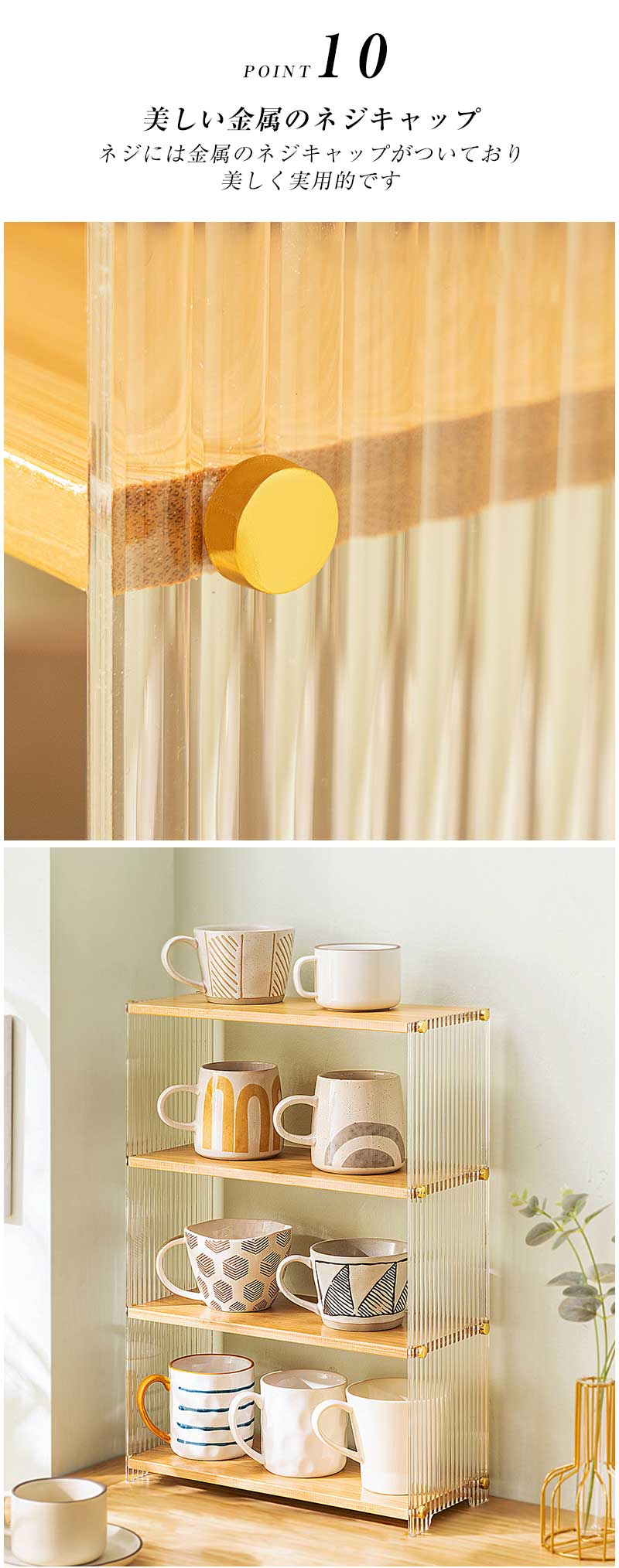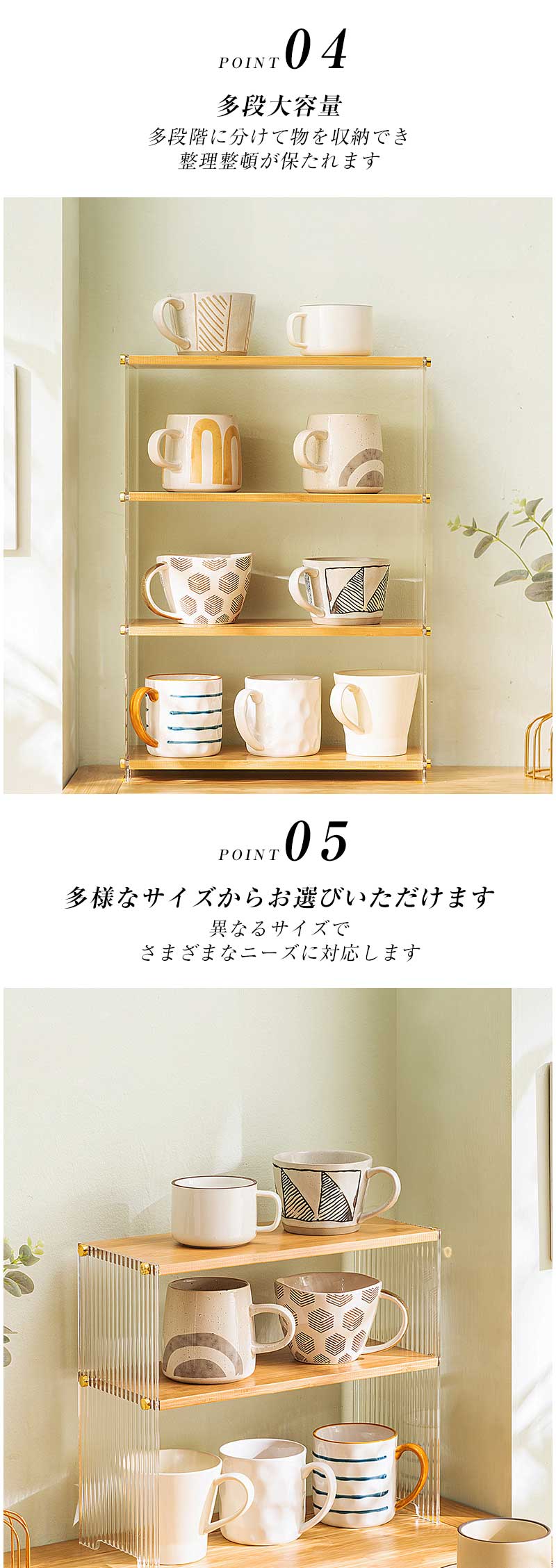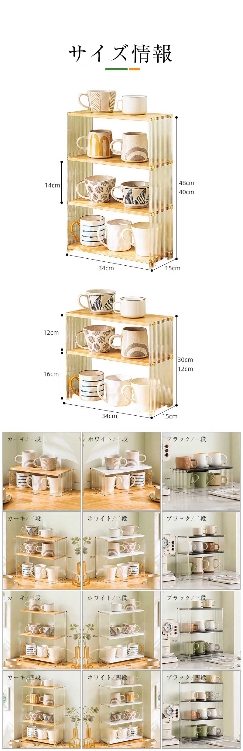 キッチン収納 食器棚 卓上 コップ収納 カーキ ホワイト ブラック 一段 二段 三段 四段
