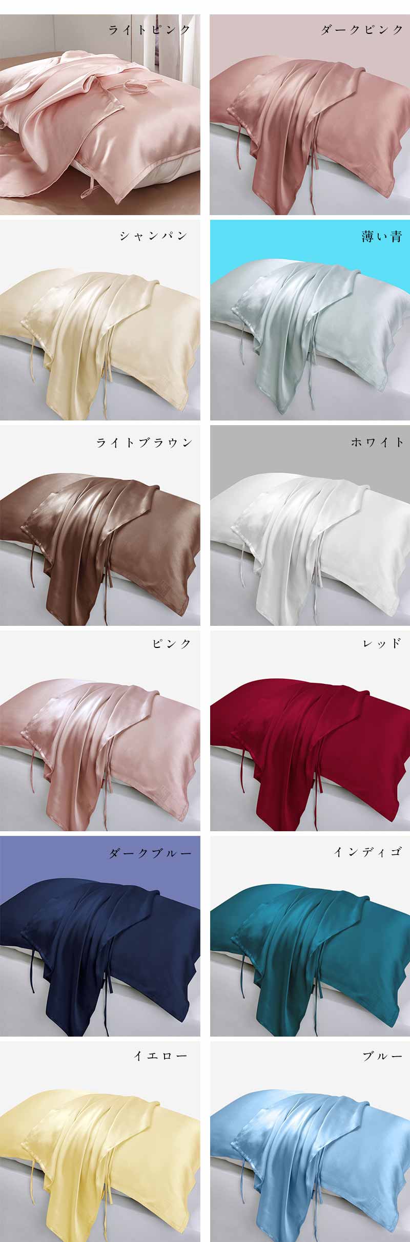 枕カバー シルク100% 50×80 寝具 寝具カバー シーツ 枕カバー 続々入荷中 ライトビンク ダークビンク シャンパン 薄い青 ライトブラウン ホワイト ビンク レッド ダークブルー インディゴ イエロー ブルー