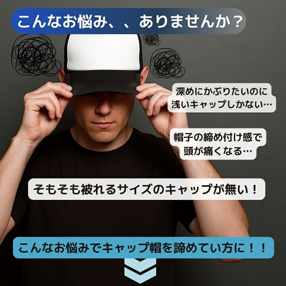 頭が大きい、締め付け感で頭が痛い、深めに被りたい・・・そんな方にピッタリ♪