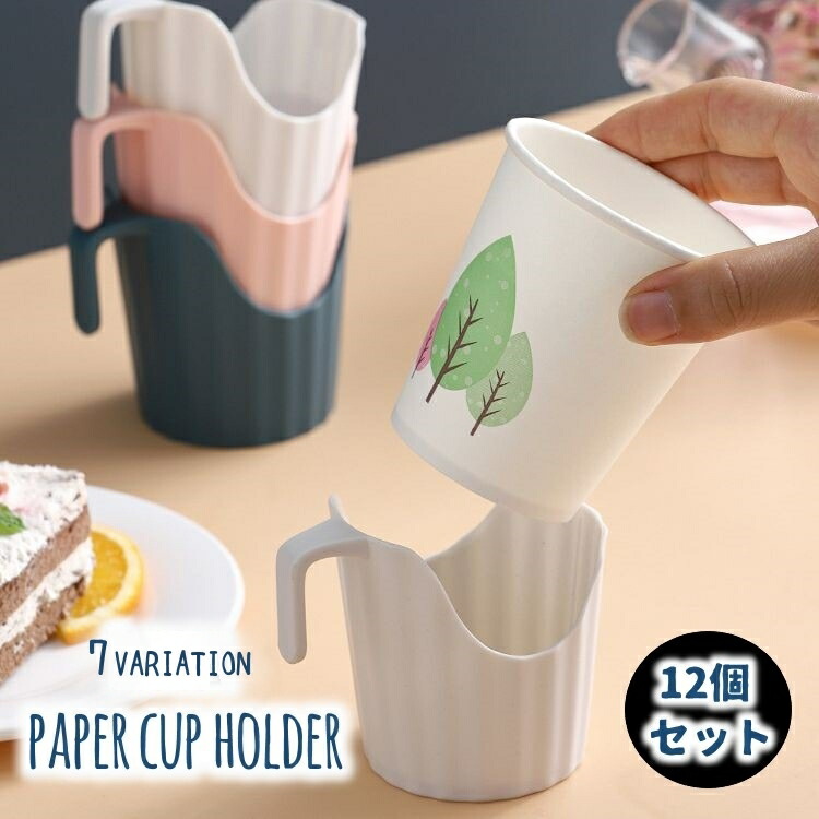 紙コップホルダー 12個セット 使い捨 キッチン用品 食器 調理器具 新登場! ピンク グレー ブルー ピンク×ストライプ グレー×ストライプ ライトブルー×ストライプ ブルー×ストライプ