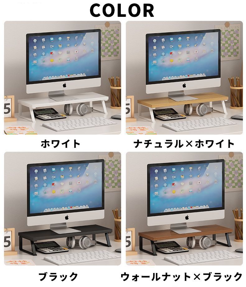 デスクトップPCラック モニタースタン ブラック ウォールナット×ブラック ホワイト ナチュラル×ホワイト