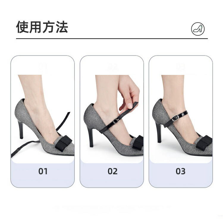 シューズストラップ ヒールストラップ 1足分 2点セット レディース 女性 パンプスベルト シューズバンド 靴脱げ防止 サイズ調節可 シンプル ベーシック 固定