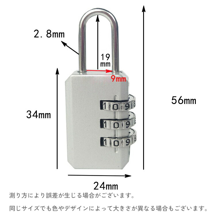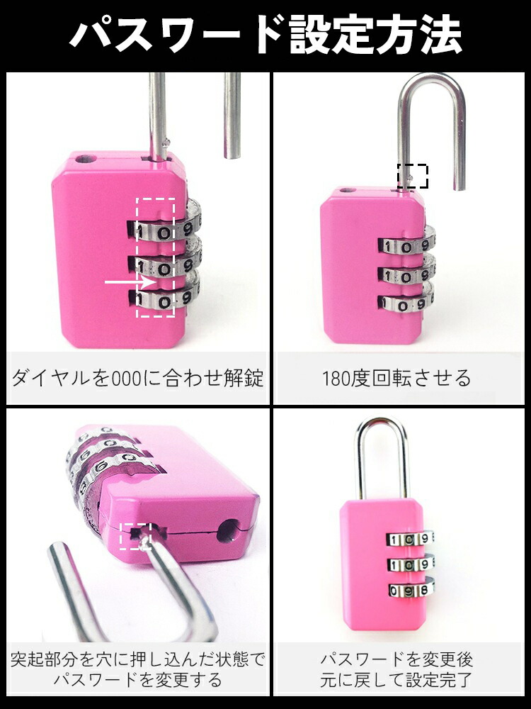 南京錠 ダイヤル式 3桁 カギ 鍵 錠 ブラック シルバー ピンク ブルー レッド グリーン ネイビー パープル イエロー