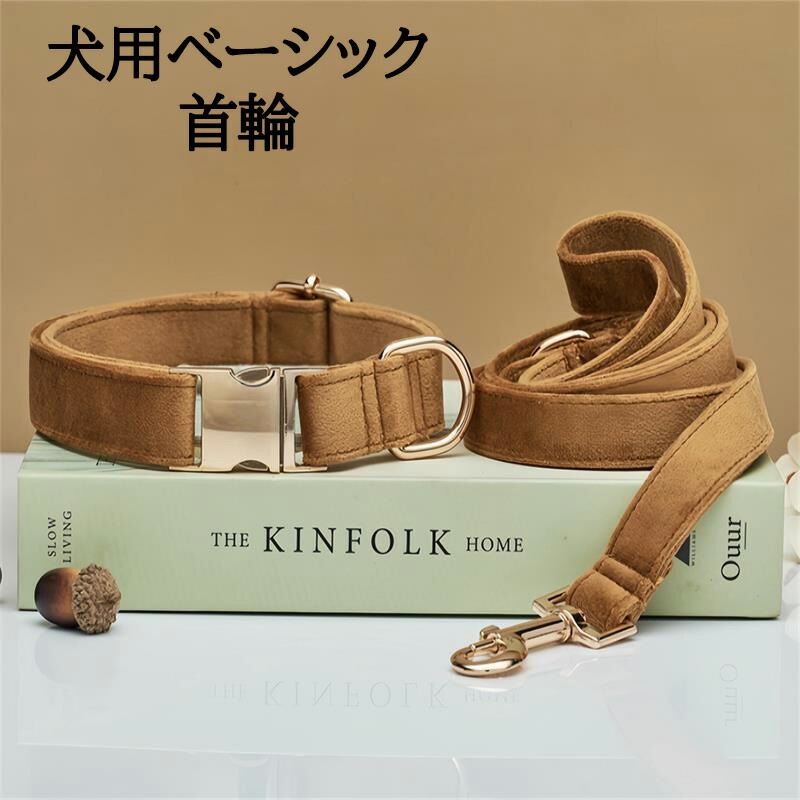 犬 首輪 犬用ベーシック首輪 おしゃれ ペット ペットグッズ 早い者勝ち ブラウン カーキ ライトグレー ホワイト 首輪本体 ロープ付き