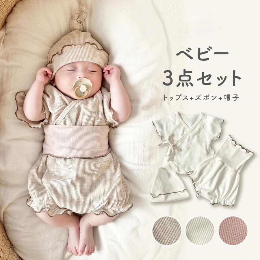 3点セット 3点 上下 おすすめ お出かけ かわいい 出産祝い おしゃれ バースデー 帽子付き 生後1ヶ月 生後2ヶ月 セレモニー 韓国子供服 ナチュラル 春夏 白 ホワイト ピンク ベージュ