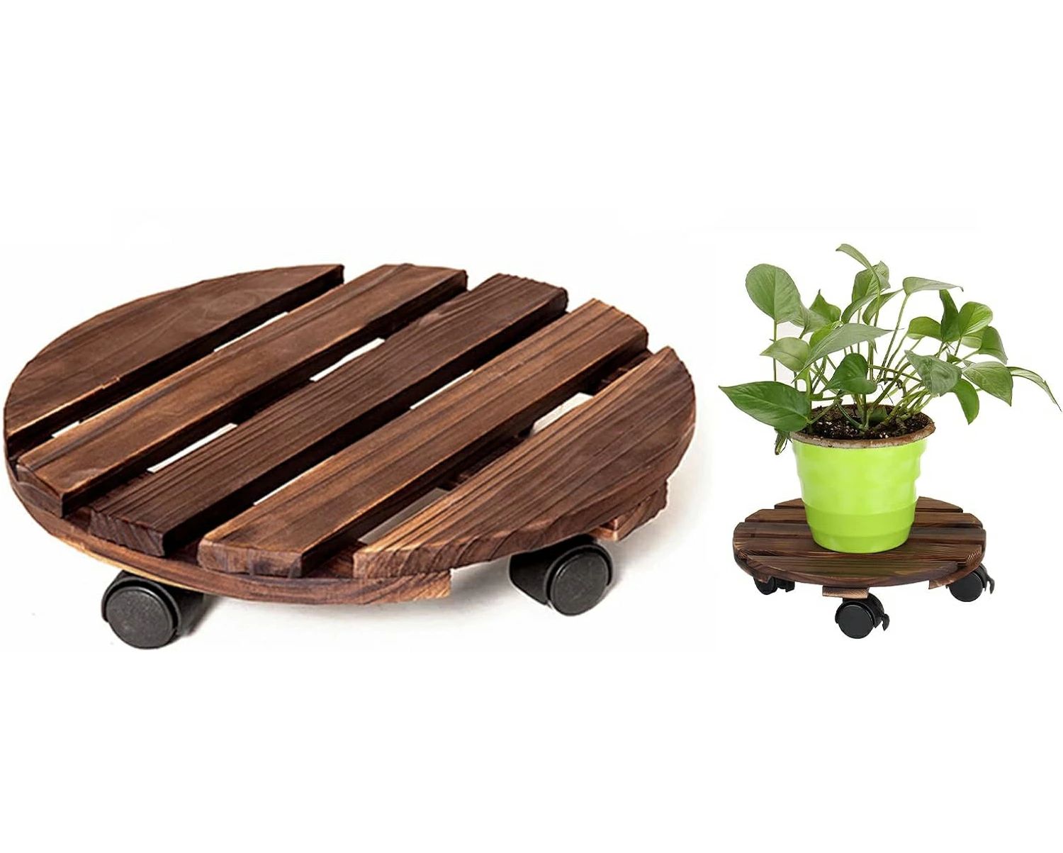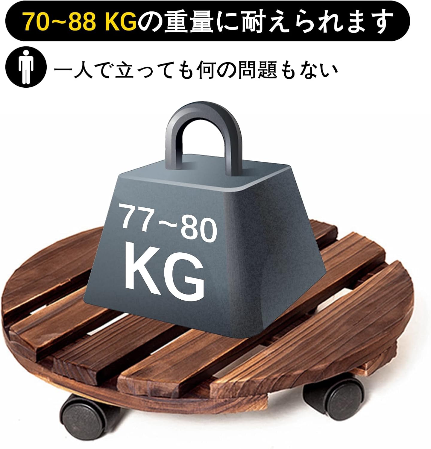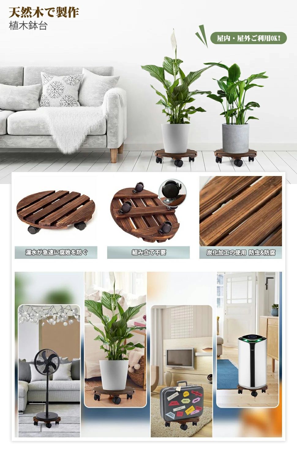 【簡単な操作】製品は組み合わせ不要で、受け取ったらそのまま使用できます。滑車は360度回転することができ、重い植木鉢でも簡単に移動することができます。木材の表面を炭化処理して長期にわたって水に浸しても腐食しない 、常に掃除をしなくてもいいです。