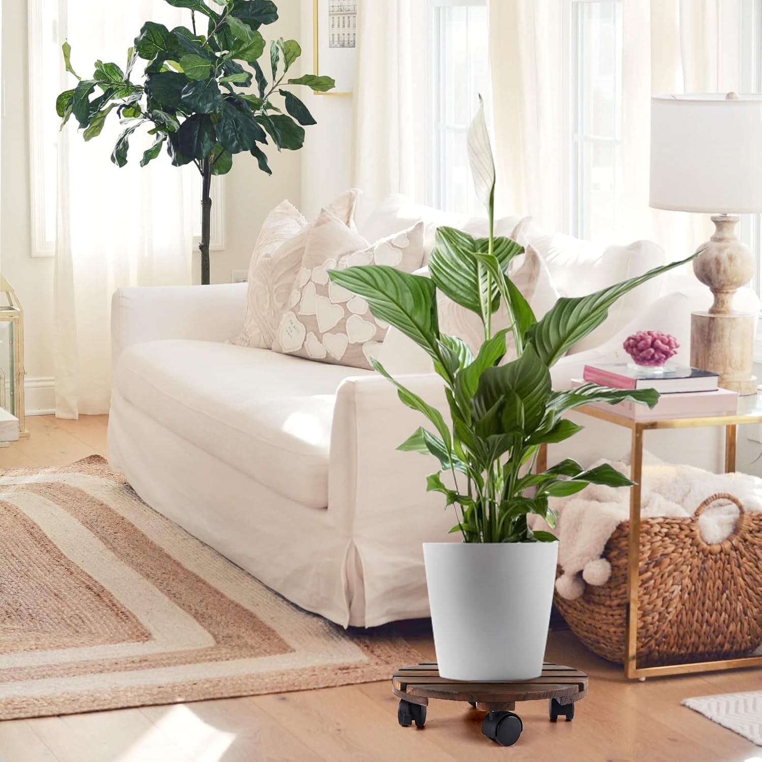 【360°キャスター付き】さまざまな形状の植木鉢に適しており、植木鉢、花瓶、大型植物鉢を簡単に移動でき、ゆかいたを傷つけることなく、車輪に静音設計が施されています。2つのキャスターはロックできるので、安定感があって、生活をより便利になります。