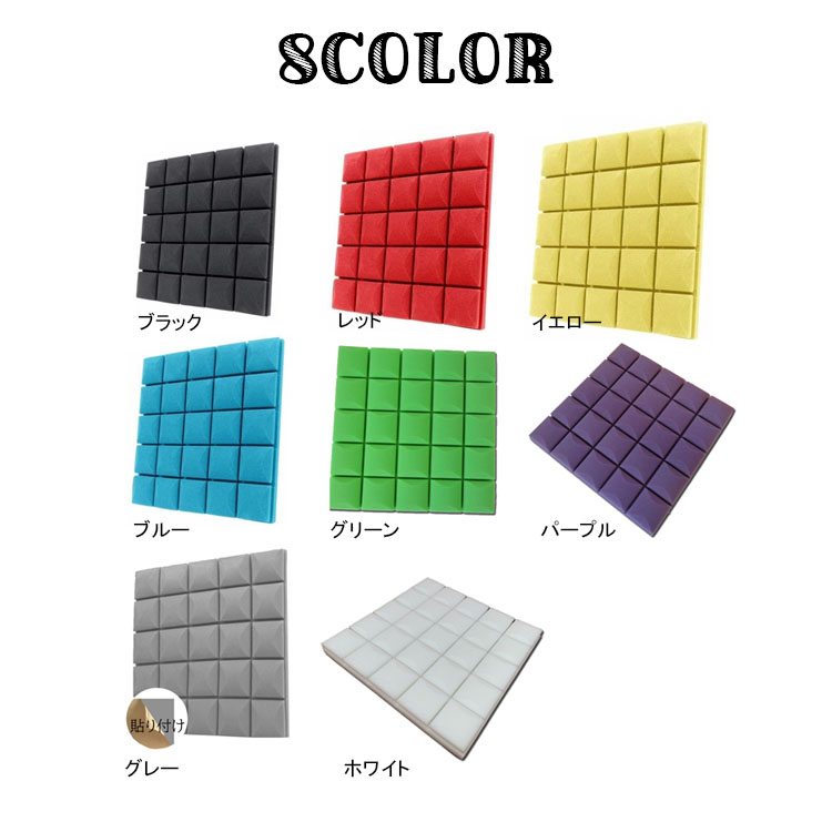 防音シート 壁 床 吸音材 遮音シート ブラック レッド イエロー ブルー グリーン パープル グレー ホワイト 5枚セット 10枚セット 12枚セット 20枚セット 30枚セット 40枚セット