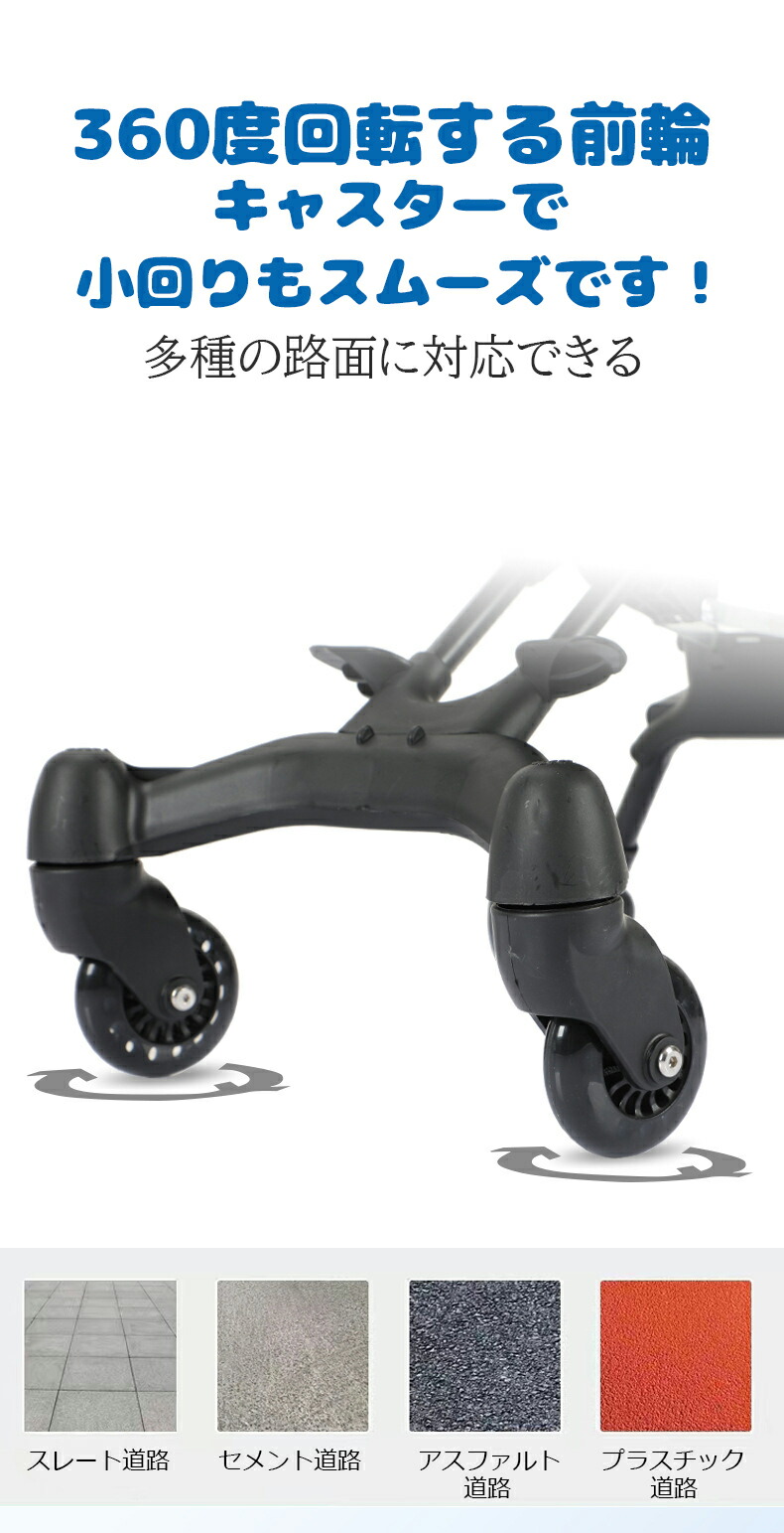 両手でしっかりと握れる手押しハンドルに4輪設計、ストッパーつきなので安定性があり、凸凹道でも安心してお使いいただけます。