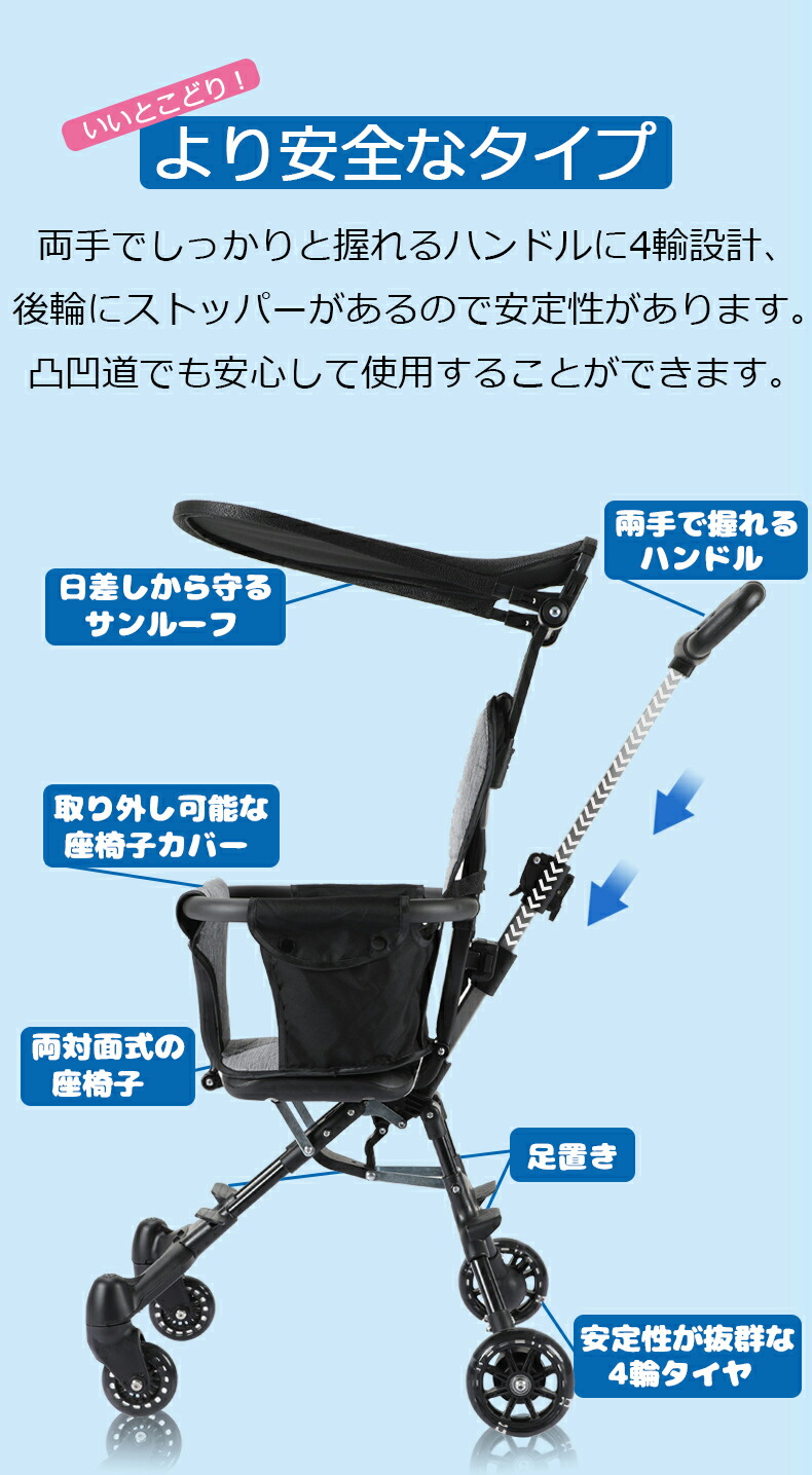 軽量折りたたみ 4輪ストローラー サンルーフ付き