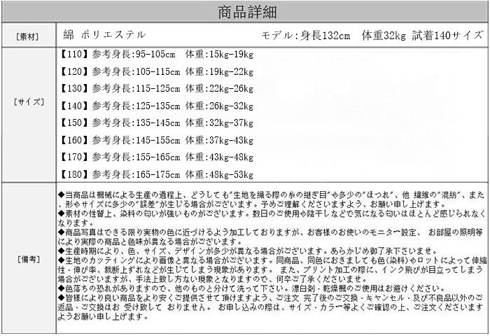【140】参考身長:125-135cm 体重:26kg-32kg