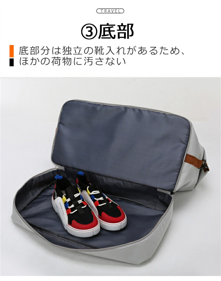 3.底部分は独立の靴入れがあるため、ほかの荷物に汚さない