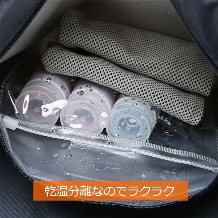防水ポケット:濡れたタオルやお風呂用品、折りたたみ傘などを分けて収納