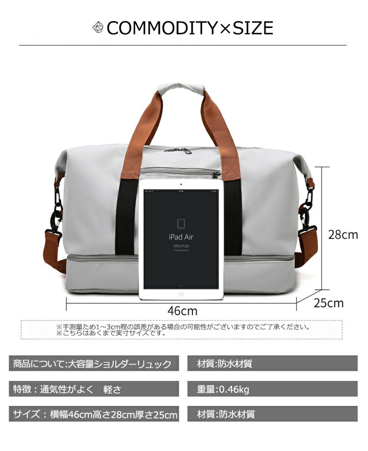 スポーツバッグアウトドアリュック旅行バッグ 多機能 靴収納 乾湿分離 トートバッグ マザーズバッグ キャリーオンバッグ機内持ち込み 修学旅行 ジムバック スポーツジム バッグジムバッグ リュッ 大容量