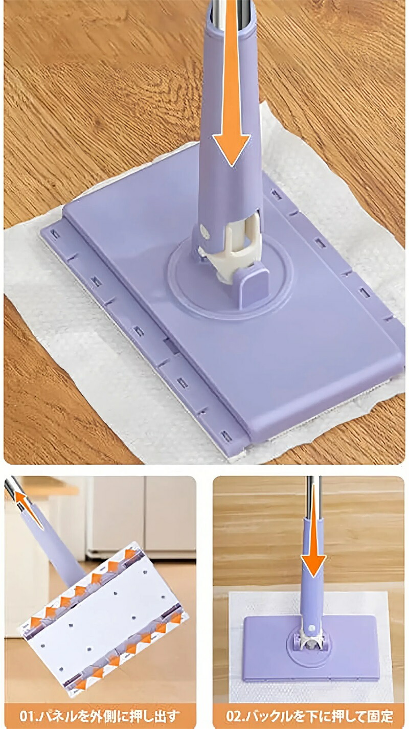ペーパータオル掛けフローリングモップ、乾湿両用モップ/自動に挟めるデザインで、手を汚さない。360°回転可能で、ベッドの下、隙間、死角などを楽に掃除できる。