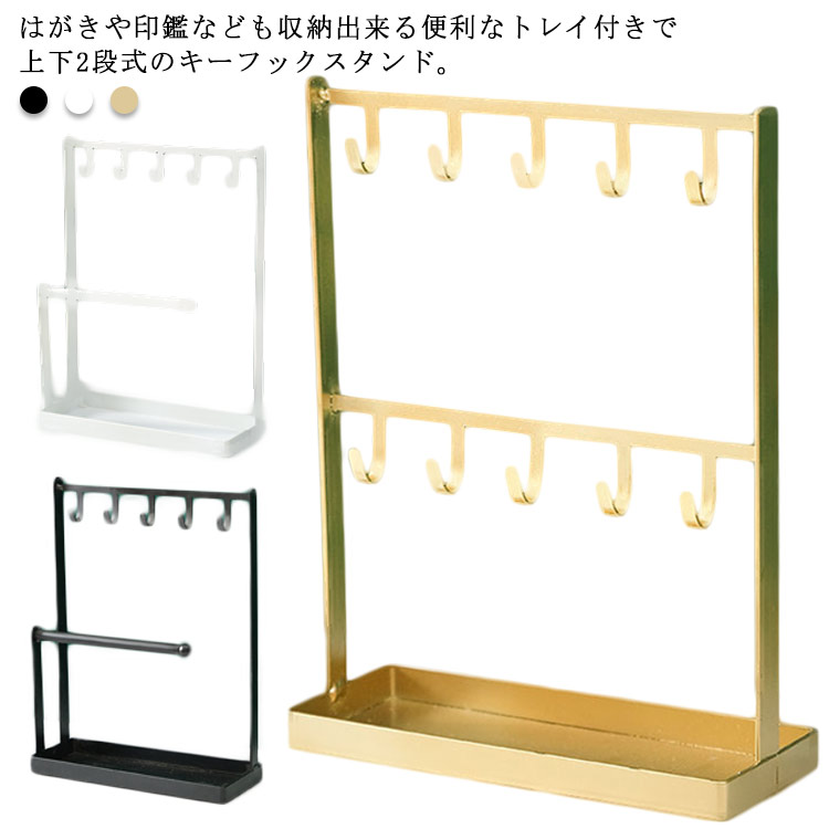 はがきや印鑑なども収納出来る便利なトレイ付きで上下2段式のキーフックスタンド。