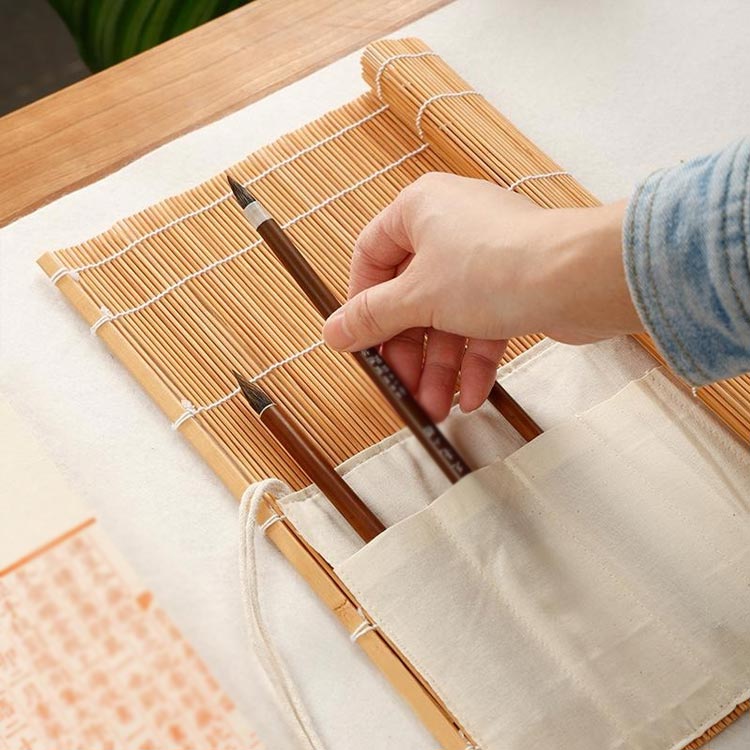 丸めて保存しやすく筆を巻き込みますぶつけたりぶつけたりしてペン先が傷むことを避けます。