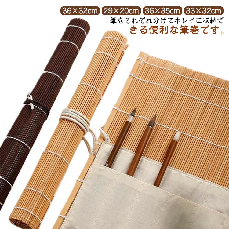 筆がズレ落ちにくく、分けてキレイに収納できる 筆袋付き 筆巻き 書道 習字 道具 竹 筆入れ 筆ケース 5 7 8本収納可 36×32cm 36×35cm 33×32cm ポケット付 29×20cm