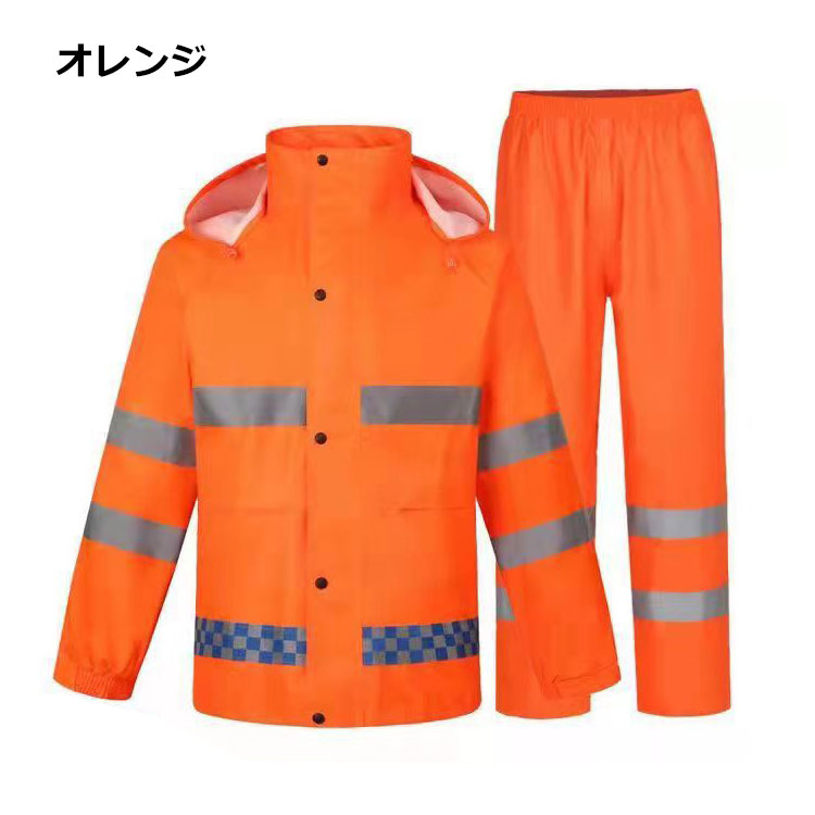 レインウェア レインコート 上下セット メンズ レインジャケット レインパンツ 男女兼用 防水 総裏メッシュ フード付き 反射テープ付き 梅雨対策 豪雨 雨具 ブラック オレンジ 通勤 通学 グリーン