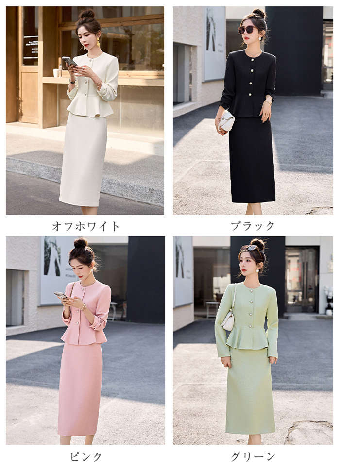 ツイードセットアップ スーツ フォーマ スーツ セットアップ スカートスーツ 豊富 ブラック オフホワイト ピンク グリーン S M L XL