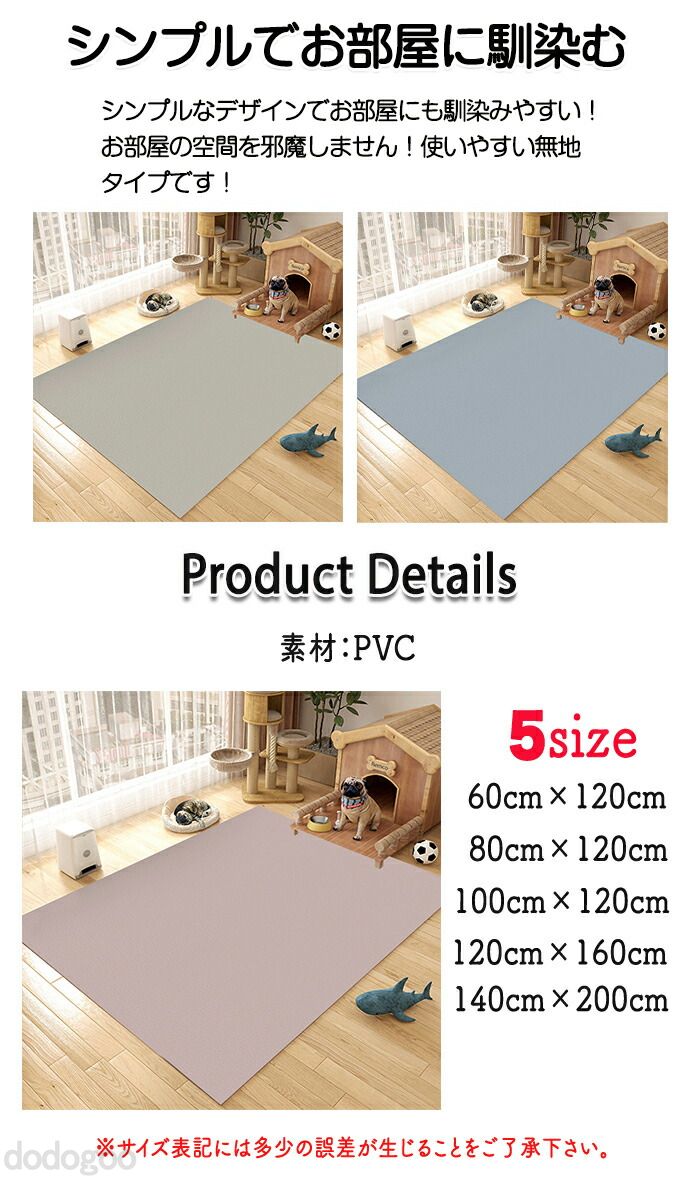 ダイニングマット 滑り止め 洗える ペ ペット ペットグッズ 続々登場 ブラウン グレー ブルーグレー アイボリー ベージュ ピンク 60×120cm 80×120cm 100×120cm 120×160cm 140×200cm