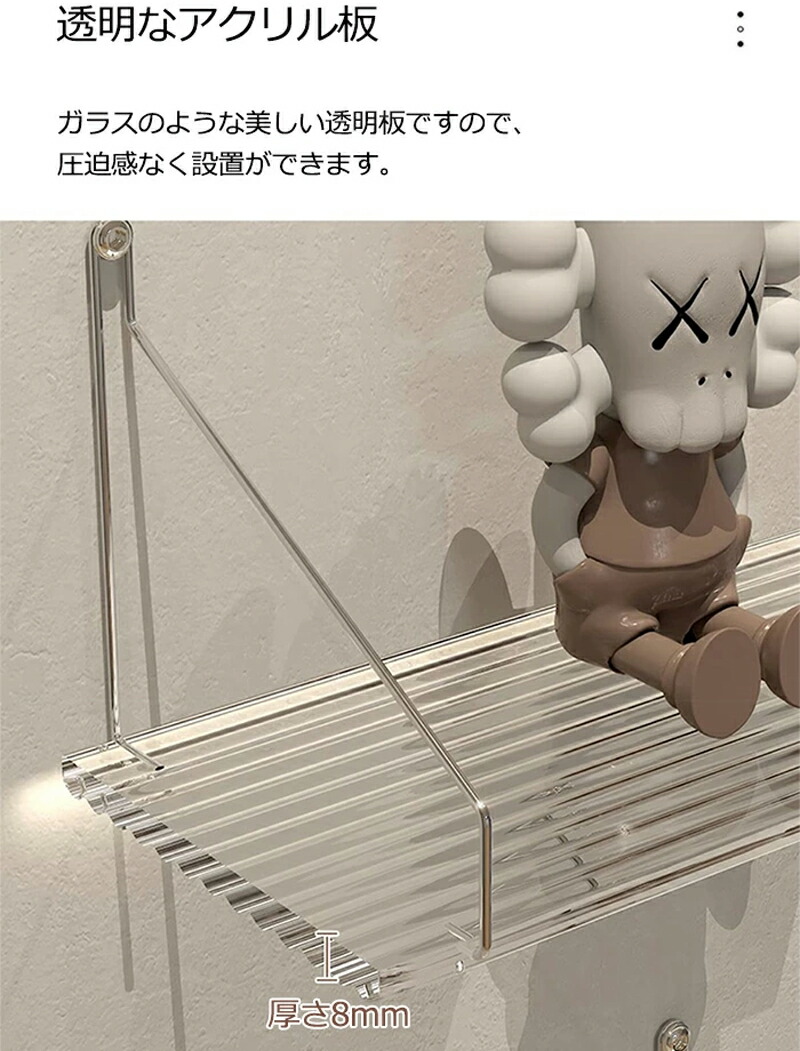ウォールシェルフ 賃貸 取り付け アクリル ラック 壁つけ棚 透明 アイアン ウォールラック 壁掛け 棚 壁 石膏ボード 飾り棚 おしゃれ 北欧 インテリア 壁面収納 小物置き 玄関 収納