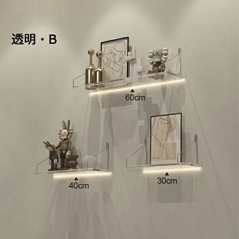 ウォールシェルフ 賃貸 取り付け アク 透明・A 透明・B 30cm*1枚 40cm*1枚 60cm*1枚 30cm1枚+40cm1枚+60cm1枚
