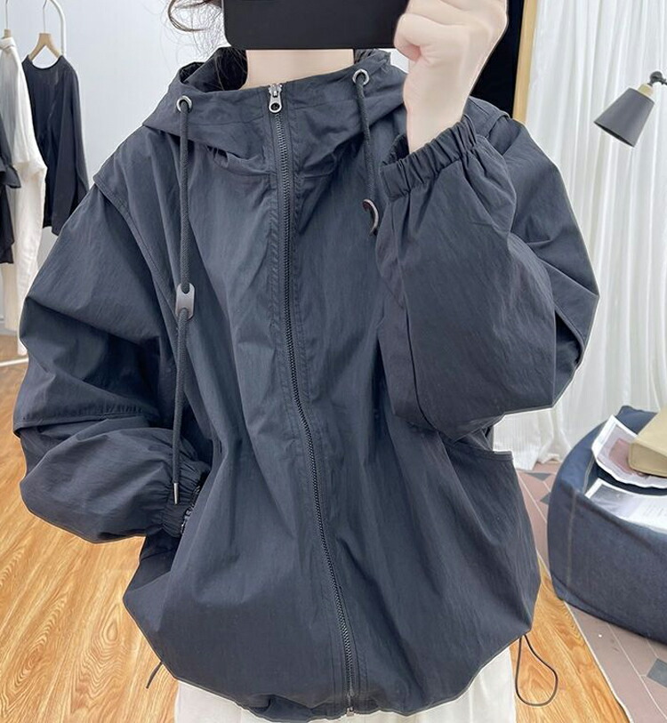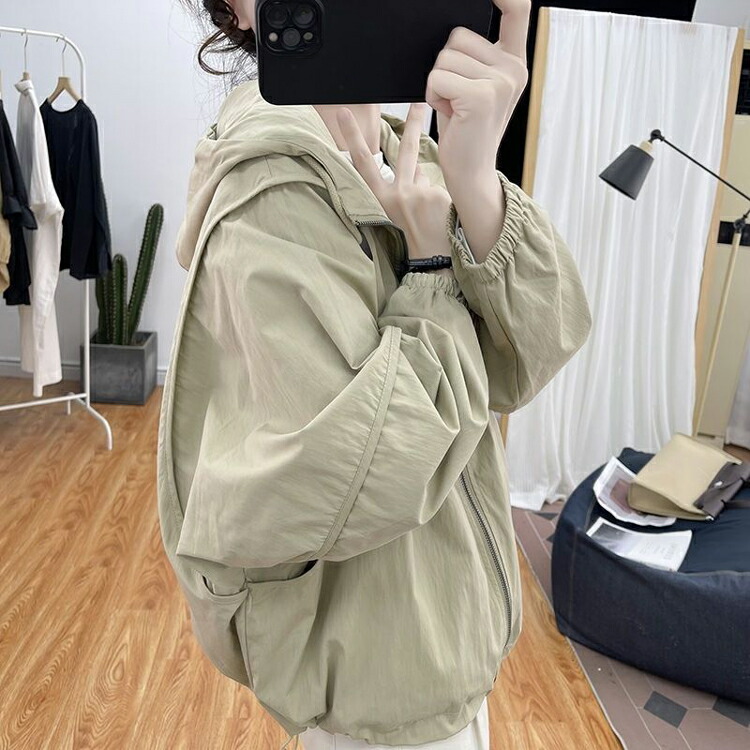 ジップブルゾン レディース フード付き パーカー アウター 大きいサイズ ゆったり スタンドカラーブルゾン フード ジップパーカー 裏地 ポケット カジュアル 春パーカー 羽織 マウンテンパー コーデ