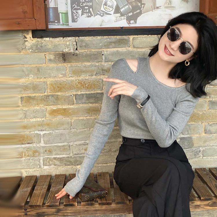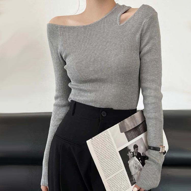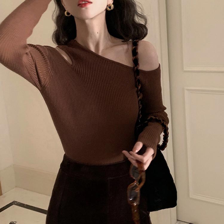 ワンショルダー ニット トップス レデ トップス Tシャツ カットソー 通販 ブラック グレー コーヒー