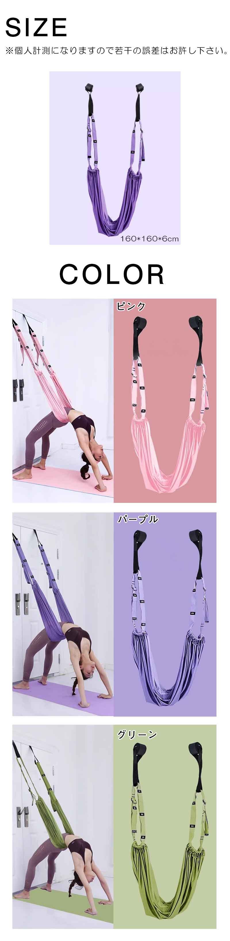 エアリアルヨガ ヨガベルト ヨガハンモ ピンク パープル グリーン