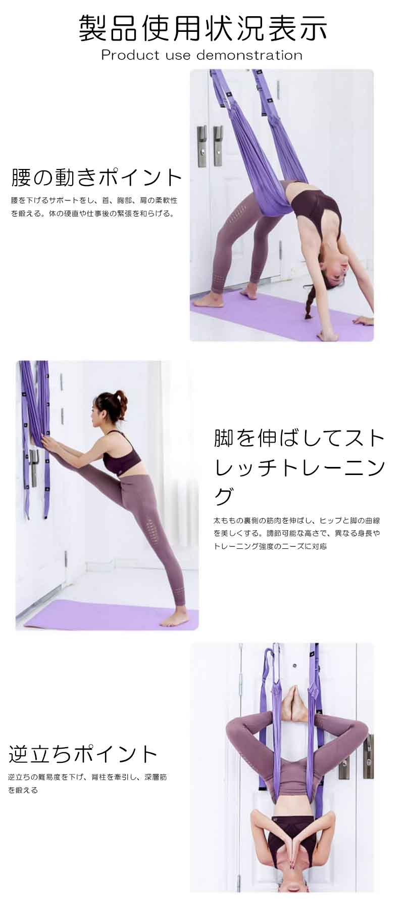 通常のヨガ練習だけでなく、深いストレッチ、背中の理療、脊椎矯正、コアトレーニングなどにも使用でき、フィットネスやリハビリトレーニングに最適です。