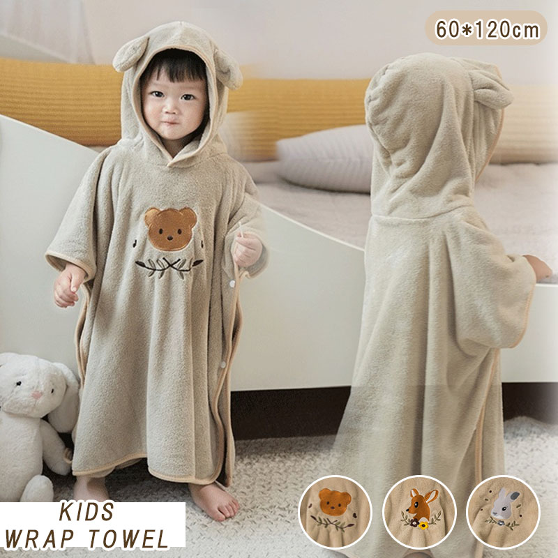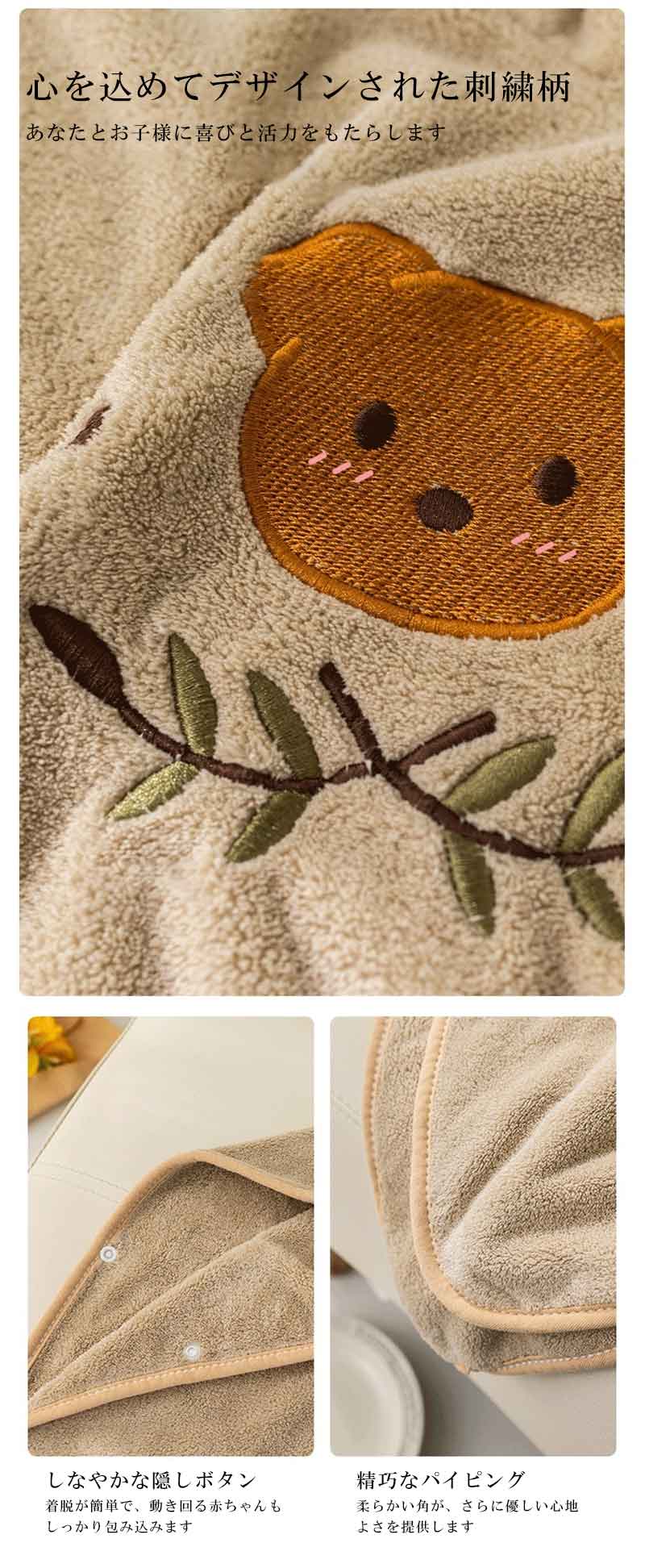 フード付きバスタオル 可愛いデザイン お風呂上がり 乾きやすい 時短 ベビーバスローブ 柔らかい ボタン付き 海 レジャー プレゼント ギフト 吸水 速乾 保暖 子供用 赤ちゃん