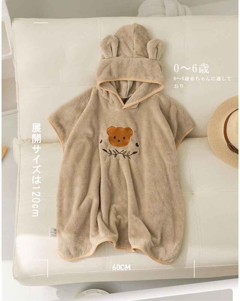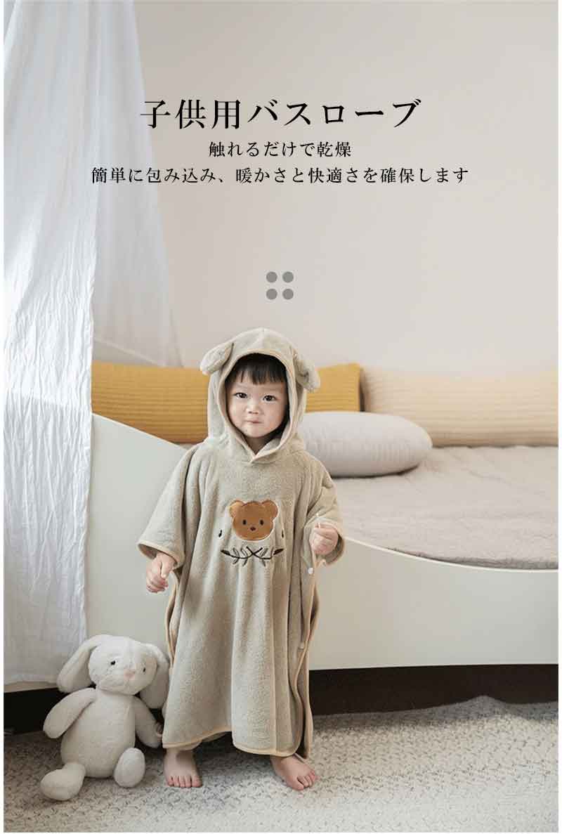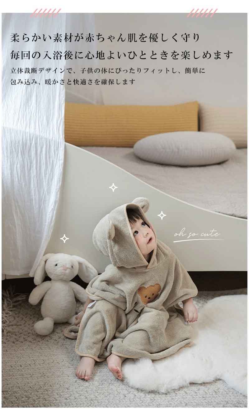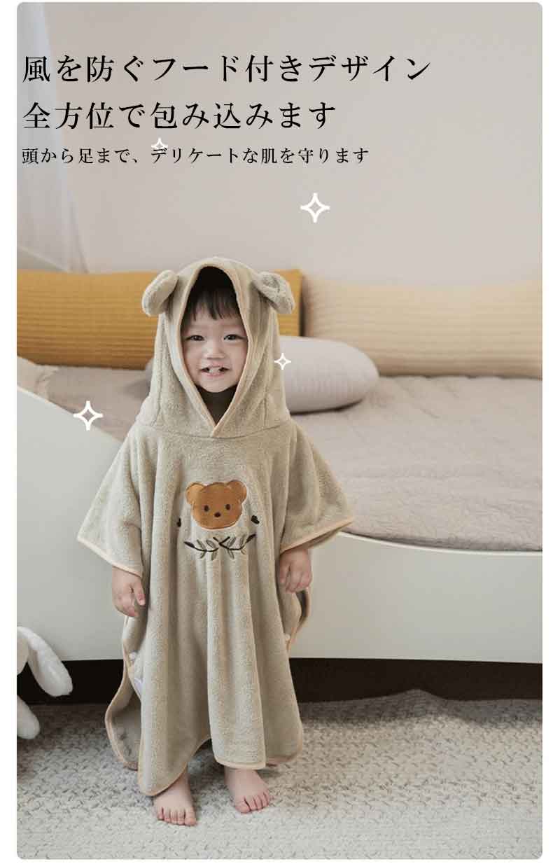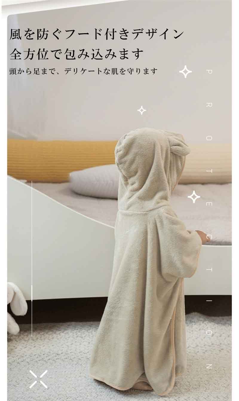 ベビーバスローブ フード付き 3色選べる バスタオル 吸水 速乾 バスポンチョ おくるみ 男の子 女の子 ブランケット 帽子 可愛い 子供 こども ポンチョ 子供用 赤ちゃん 水泳 プール パジャマ